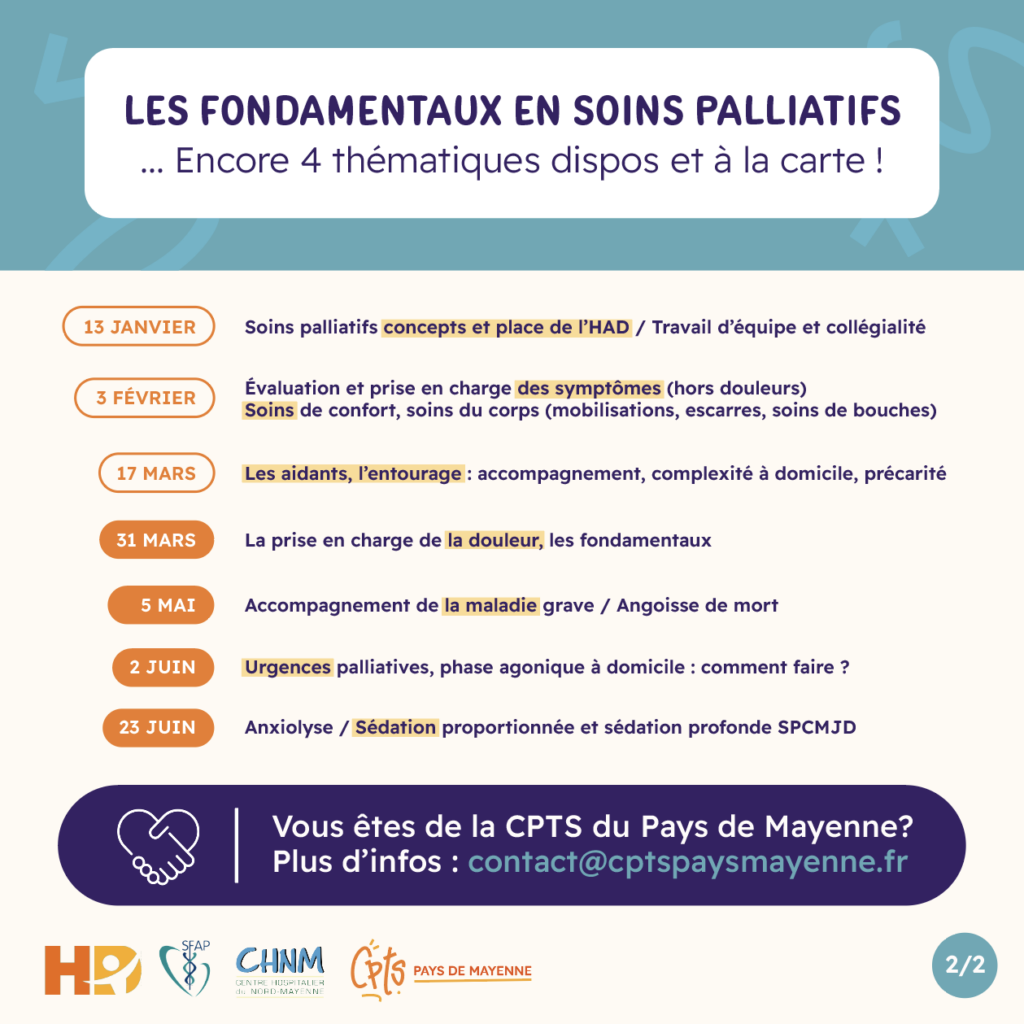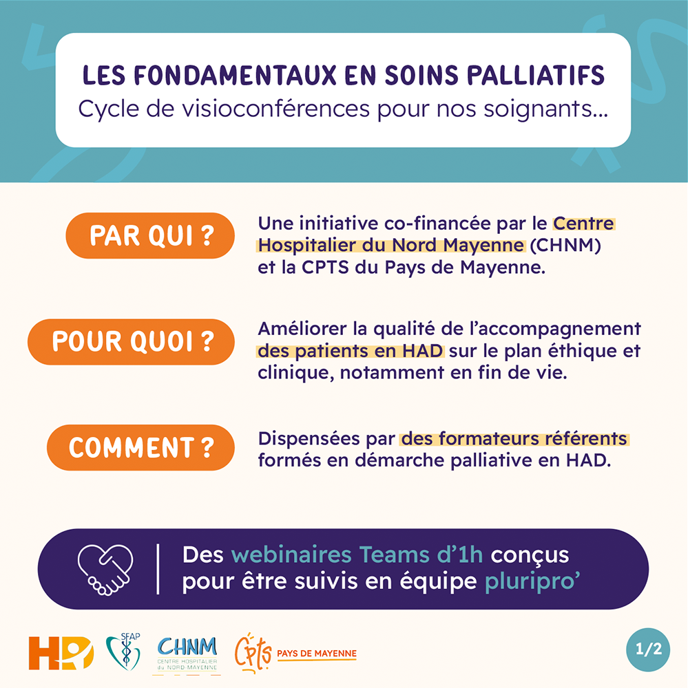 Cette initiative, co-financée par le Centre Hospitalier du Nord Mayenne (CHNM) et la CPTS du Pays de Mayenne, a pour objectif d’améliorer la qualité de l’accompagnement des patients en HAD sur le plan éthique et clinique, notamment en fin de vie.